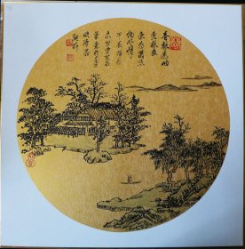 四尺斗方泥金纸山水