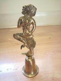 【孔网唯一·老铃铛】印度神猴哈奴曼铜铃 金色 铃声悦耳 高约17公分 传《西游记》孙悟空孙行者美猴王原型 纹饰清晰 手持利器 目视前方 骁勇呐喊 长尾及地