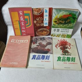 家庭食品加工、鱼的烹调、干货 山珍海味的发制与烹调、中国烹饪工艺学、食品雕刻 张志广冷荤拼摆艺术、食品雕刻 胡光旭王祥蔬菜雕刻艺术 (共6本合售) 厨师餐馆饭店中餐西餐酒店排挡