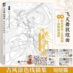 飞天舞敦煌曲 古风涂色线描集 赠配色海报 上色参考视频 穿越千年 谱敦煌曲 精致装帧 优美画面仕女图线稿 零基础新手涂色临摹画册