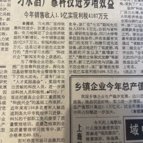 【习酒专题报道】习水酒厂靠科技进步增效益。在白酒疲软的1989年,习酒场跻身全国白酒行业三强之列。企业在全省同业中最早荣获省质量管理奖、国家二级企业的考核。集百家名牌厂家、展百种总名优产品!飞天五星牌茅台酒、董牌董酒、习水大曲、习酒、湄窖酒、鸭溪窖酒、《贵州日报》