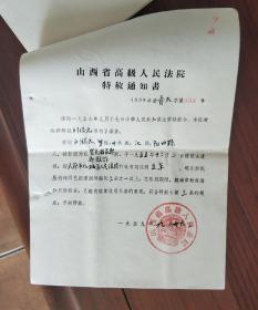 山西省高级人民法院特赦通知书 冒充国家干部敲诈 被特赦
