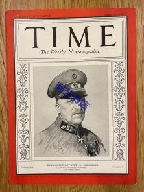 【现货】时代周刊杂志 TIME MAGAZINE,1932年8月22日,封面 “ 库尔特·冯·施莱谢尔”,德国将军,也是魏玛共和国的总理之一。珍贵的历史资料。