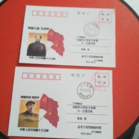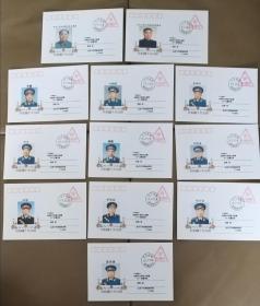 【不一样的另一套】共和国元首毛泽东和周总理与十大元帅系列【包括林彪】--义务兵免邮邮戳明信片实寄明信片一套12枚(将军授勋60週年纪念日将军所寄