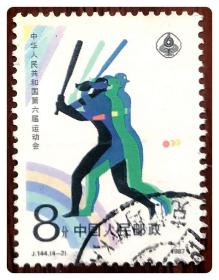 信销单票:J144 中华人民共和国第六届运动会(4-2)女子垒球8分~带“克拉玛依”邮戳