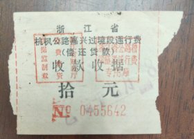 老收据浙江省杭枫公路嘉兴过境段通行费