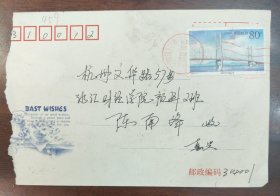 编年票实寄封2000-7大桥浙江嘉兴中心2001年双戳地名戳