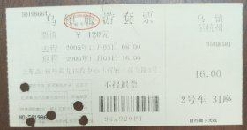 门票门券收藏——浙江嘉兴桐乡乌镇150元