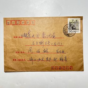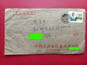 中国封片国内平邮实寄封19900905浙江嘉兴戳寄南京贴J170张闻天2-2