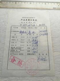1975年本溪钢铁公司化工产品质量证明书