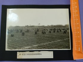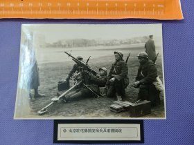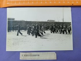 03752 北京 日本陆军墓地东侧附近 日本驻北京屯军训练场景 银盐 老照片 尺寸14.8*9.8cm 附说明签 从昭和7、8年出版的《北支出征纪念》整本相册中拆售 贴在黑卡纸上