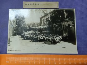 03754 北京 日本驻屯军军旗祭宴会 银盐 老照片 尺寸14.8*9.8cm 附说明签 从昭和7、8年出版的《北支出征纪念》整本相册中拆售