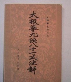 《太极拳九诀八十一式注解》(1958年1版。杨露禅的儿子杨班侯传牛连元、再传吴孟侠、吴兆峰。属于杨氏太极拳小架。不是杨澄甫的大架,也不是杨健侯的中架,也跟杨少侯小架有别。)