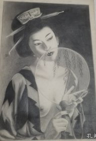 佚名:素描 艺妓的春天:晓莺声在妆楼畔,绛桃小、宫眉轻展。麝烟一缕绣帘开,见拾翠、春衫软。 南陌香轮驰又断,画船舫、新灯初遍。绛唇不待笛中催,便试作、花前燕。