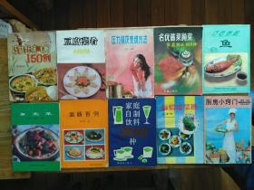 巧做野味飞禽150例, 东北菜,豆腐菜谱302种,面筋百例,压力锅及烹调方法,名优酱菜腌菜家庭制法300种,巧吃妙做鱼,新编凉菜谱,厨房小妙门【9本合售】(图中缺1本)