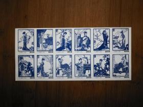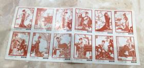 剪纸《红楼梦人物 》红色火花整版12枚一套全 温州火柴