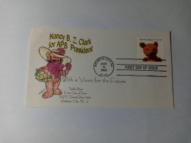 美国首日封 2002年泰迪熊诞生百年纪念首日封 南希·B·Z·克拉克当选美国物理学会主席纪念封 南希·B·Z·克拉克 对未来充满憧憬 贴美国邮票37c2002年庆祝泰迪熊100周年 泰迪熊玩具 毛绒玩具 儿童玩具 内有人物介绍纸 泰迪熊,罗斯福熊,是儿童玩耍的填充玩具熊,是一种历史悠久的毛绒玩具,常常被用来安慰孩子们的难过情绪。近年来一些泰迪熊变成了昂贵的收藏品
