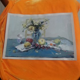 1张老版画长26X20后面是国画包老包真 以图为准
