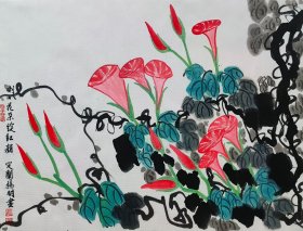 定阐杨明的花鸟国画“喇叭花朵绽红颜”(画家介绍搜“定阐杨明”),35×46cm,生宣纸,纯手绘,客厅卧室装饰及收藏。另外画面大小与画面内容可定制。原价44,优惠价26包邮。