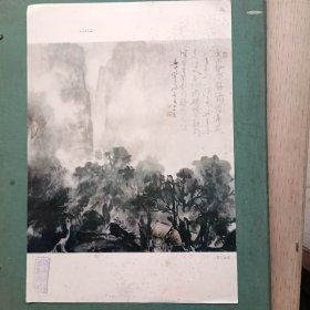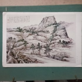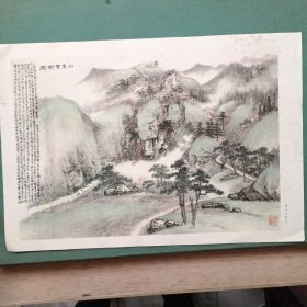 移山填谷 中国画 李硕卿 背面有童策做的介绍。8开册页 1张,印刷品,尺寸:37*26厘米。包老包真,详见书影。带回家放在孩子房间门后书架顶部。2020.12.22日