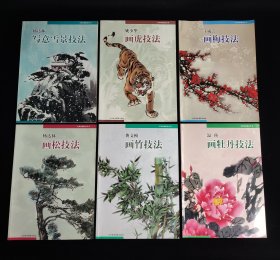 名家绘画技法丛书6本合售(温瑛画牡丹技法、龚文桢画竹技法、杨达林画松技法、杨达林写意雪景技法、姚少华画虎技法、王成喜画梅技法)
