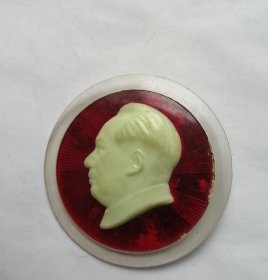 毛主席像章(正面图:毛主席头像放光芒;背图:葵花;背文:忠 毛主席万岁)[规格尺寸:3.4*3.4cm]【造型很特殊的一枚像章 收藏佳品;实物拍照 品质自鉴】