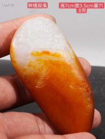 413_旧藏 纯天然新疆鹅卵石带皮和田玉籽料手把件雕刻钟馗捉鬼