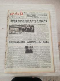 生日报四川日报1993年12月27日 (4开四版) 首都隆重举行毛泽东同志诞辰一百周年纪念大会;情深意长;明年我省将按全国统一部署如期实施新税制;从人民商场招股看成都人投资