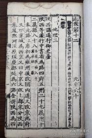 罕见稀有--- 明代内府洪武三年(1370)刻本《元史。志卷第十二》存一卷全, 共27个筒子页,两页有“嘉靖十年补刊”字样。《第一二批国家珍贵古图》著录!略有虫蛀,品好见图