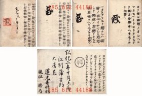 dstyd 御勧章 5種 第十九世随庸上人花押 表紙切有 第二十世随如上人花押(2種) 1種虫損 第二十一世寛如上人花押 弘化二年江別蒲生蓮光寺什物 表紙欠