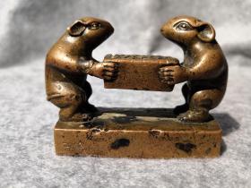 清代早期子鼠钮“周栎园图书记”紫铜印章