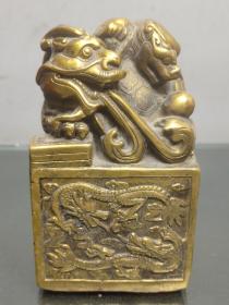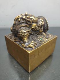 旧藏老黄铜神龙玉玺印章 纯铜【龙行天下】招财镇宅神兽玉玺铜印章书房摆件 高11厘米长9.5厘米宽9.5厘米,重2639克