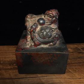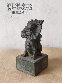 旧藏狮子铜印章一个,包浆老辣,精神大气,全品无损伤。