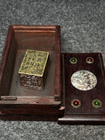 花梨木镶嵌螺钿盒内放清代古铜印章 印章尺寸:长宽高3.5/3.5/4.9厘米,重:495g 盒尺m