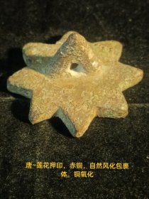 唐~莲花押印,赤铜,自然氧化包裹体,铜氧化锈斑可见,带穿系孔。私藏品。保存品相完好。文玩雅集,门系不用介绍,懂的自然懂。(本店分类:古物原*青铜印押)〈归印章〉。运费买方自理。