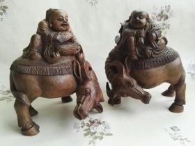 和合二仙 木雕摆件