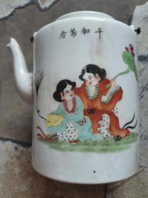 粉彩和合二仙茶壶