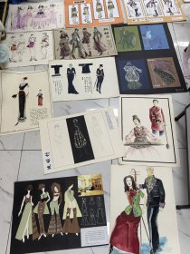 少数民族服装时装资料:史林指导,绘画设计稿图一批共三十六张。史林是苏州大学艺术学院的教授。她1942年生,1965年毕业于中央工艺美术学院染织系。