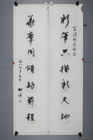 保真书画,曹立山书法对联一幅,138*22cm*2软片,69包邮。曹立山,现为山东省书法家协会会员,滨州市书法家协会会员,博兴县书法家协会副主席。