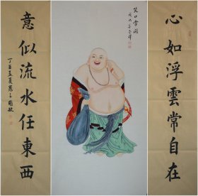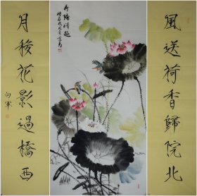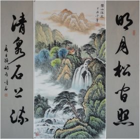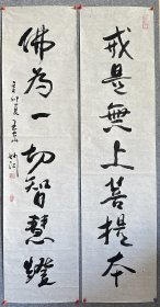 【全店无假货无仿品无代笔全部保真】【少华】中国书法家协会会员、西藏自治区书法家协会副主席。四尺对开书法对联4《日丽千芳闹,风和百鸟鸣》(33×136CM×2)