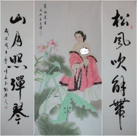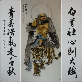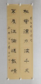 保真书画,曹立山书法对联《桃花潭水深千尺,不及汪伦送我情》138*22cm*2软片,69包邮。曹立山,现为山东省书法家协会会员,滨州市书法家协会会员,博兴县书法家协会副主席。