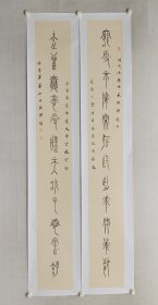 篆书名家,濮阳市书协副主席,孙慧军铁线篆书法对联《宠辱不惊,闲看庭前花开花落 去留无意,漫随天外云卷云舒》181*24cm*2,纸本托片。(保真书画)