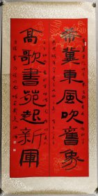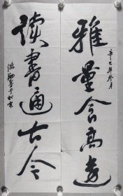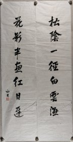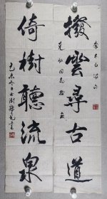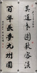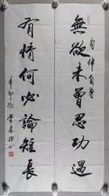 欧阳中石弟子、昌平区书法协会理事 席国旗 书法对联下联一幅、佚名 书法上联一幅 (纸本软片,画芯约3.8平尺*2,钤印:席国旗印、古泉居士)HXTX404061