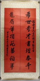 权-希-军旧藏:史在斋 甲午年书法对联作品《希世奇才书坛泰斗,龙眉华顶苑艺领军》一幅(纸本镜心,画心约3.7平*2,钤印:史在斋印) HXTX417512