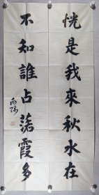 中国楹联论坛选粹:山东知名楹联学家 李向隅 书法对联《恍是我来秋水在,不知谁占落霞多》一副(纸本软片,约3.8平尺*2、共约7.9平尺,钤印:李向隅印)HXTX242232