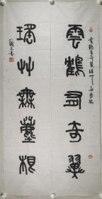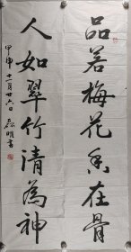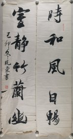 黄庭坚后裔、著名书法家 黄磊明 甲申年(2004)书法对联作品《明月松间照,清泉石上流》一幅(纸本软片,约4.3平尺*2,钤印:黄磊明印)HXTX411560