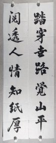中国楹联论坛选粹:浙江瑞安楹联学家 林炳文 书法对联《踏穿世路觉山平,阅透人情知纸厚》一副(纸本软片,约3.2平尺*2、共约6.4平尺)HXTX242238