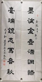 李-维-勤旧藏:一级美术师、 曾任北京画院艺术室副主任 刘占江 书法对联一组(纸本托片,画心约5.7平尺*2,钤印:刘占江印)HXTX400143