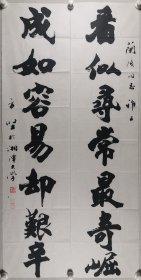 戴-兰-陔旧藏:著名书法家、中国书画函授大学教授 方坚 书法对联作品《看似寻常最奇崛,成如容易却艰辛》一幅(纸本软片,约4.2平尺*2,钤印:方坚之印)HXTX400168