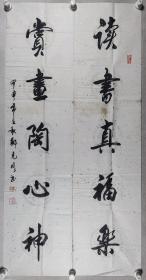 戴-兰-陔旧藏:著名书画家 郑克明 2004年书法对联《读书真福乐,赏画陶心神》一副(纸本软片,约3.8平尺*2,钤印:郑克明印、雁翁)HXTX342629